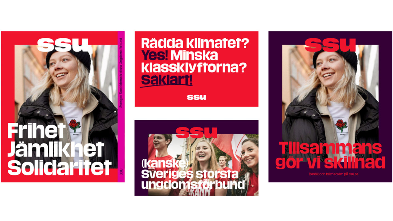 Ung, unik och lekfull, med sammanhållen stringens och kraft genom samtliga kanaler – både digitala och fysiska. I samarbete med våra vänner på designbyrån 25AH har Birdh utvecklat den visuella identiteten för Sveriges största politiska ungdomsförbund SSU.